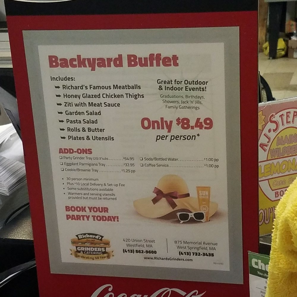 Welcome to Richard's Grinders, your go-to deli in Westfield, MA, specializing in mouthwatering sandwiches and hearty grinders. Located at 2592, 420 Union St A, this bustling café offers a range of utilities, including delivery, takeout, and outdoor seating, making it perfect for a quick bite or a laid-back meal.